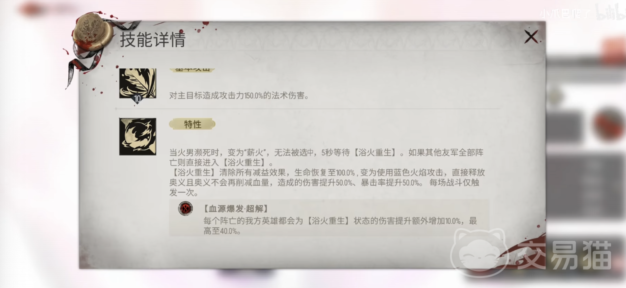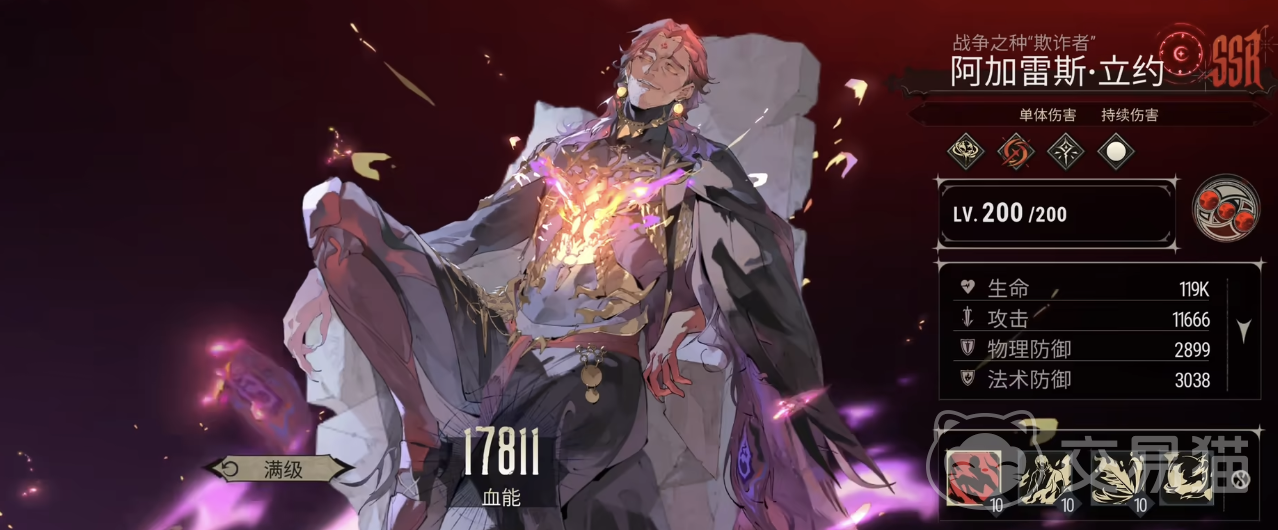 阿加雷斯的战技“受刑者新生”也是重要的战斗手段。他每12秒可主动释放一次,生成一只火鸟对随机目标造成攻击力180.0%的法术伤害。技能升级后,火鸟伤害提升至270.0%,增加了输出的稳定性。他的特性“烙印升温”则能对有持续伤害效果的敌方单位造成伤害提升20.0%,与奥义技能施加的“罪灼”效果相辅相成,进一步增强了输出。