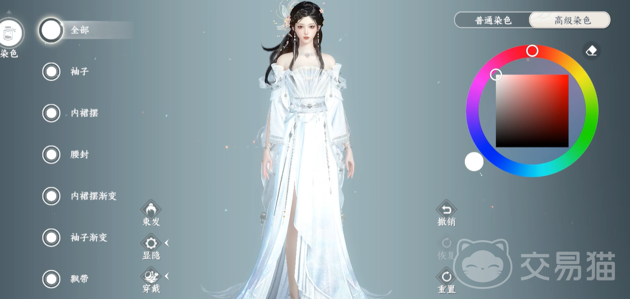 游戏中的配色分为普通染色和高级染色,普通染色可选择的空间是比较少的,而且多数颜色都很固定,只有少部分的衣服选择染色才会更加高看,想要追求多元化的话就可以选择高级染色,这个染色能选择的颜色是很多样的,还可以点出一些渐变色,让服装的颜色更加漂亮。