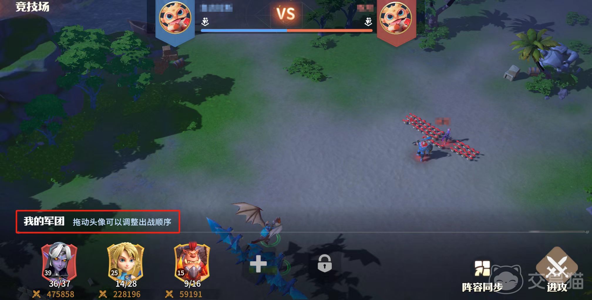 在出战方面,会根据玩家现有的英雄、士兵和科技等级来进行配置,最多能够选择五支队伍上场,通过手动调整队伍的配置和上场顺序,就能够起到更好的策略作用。如果想要更省心一些,也可以直接一键同步。活动的对战机制采用的是车轮制,每个队伍被消灭或者是超时后,下一支军团自动入场战斗,直到将对方所有的队伍消灭,存活的一方就能获得胜利。如果超时,将会按照存活队伍的剩余血量来进行判定,剩余血量高就可以获胜。