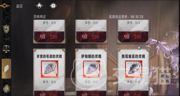 玩家可以进入到回响商店,这其实就是获取灵魄的重要途径。在进入到这里之后,可以看到有很多不一样的灵魄,例如有切尔西的灵魄,还会有吉尔兰的灵魄。每一种售价都是一样的,全部都是200个回响币,目前的库存也比较丰富。不过玩家随时都应该关注商店的刷新,在积攒足够的货币之后,就可以兑换自己所喜欢角色的灵魄,可以给后期的养成奠定更多的基础。