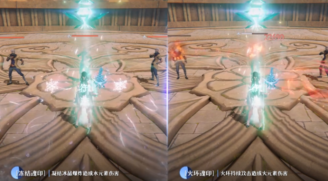 冻结魂印能和你的冰属性魂技两者之间可以完美的放在一起使用,例如可以先释放一个冻结回应,可以达到控制敌人的效果。接着也可以衔接一个高伤害的技能,在经过一整套技能下来之后,那直接就可以造成爆炸性的伤害,敌人的血条也可以逐渐的往下掉,整体的爽快感还是比较出色的。