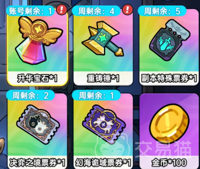 每日奖励会根据挑战不同难度的冥王等到不同阶级的宝箱,使用宝箱能随机获得不同数量的冥界之息,5阶以上的宝箱还能有机会开出来限定坐骑“冥王夜影·渊”,冥界之息可以用来在商人处兑换升华宝石、重铸锤、幻海诡域票券、金币等不同奖励。