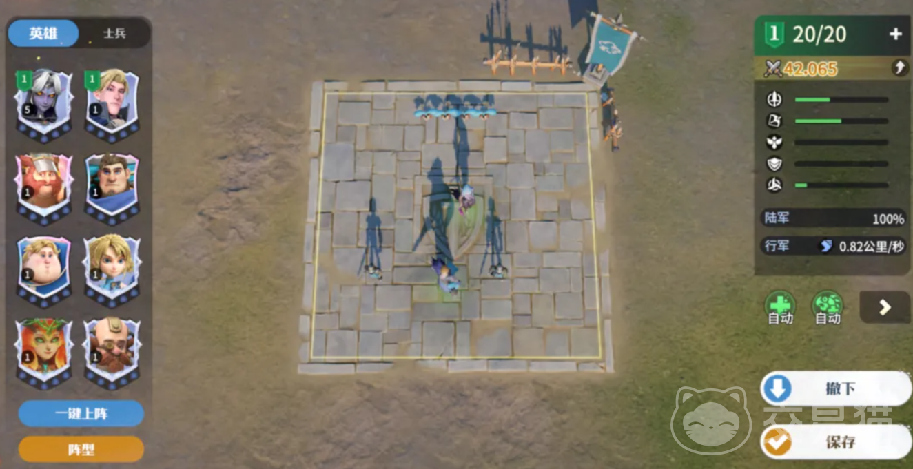每一个英雄和兵种都有着自己的定位,在具体的布阵上建议新手根据他们的职业定位来选择站位,前排直接放置抗伤能力优势的英雄和士兵,也就是战士或坦克定位,中排可以放刺客、中远程输出和护卫职业的。