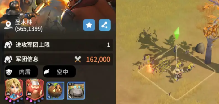 首先大家打开军团编队界面,就可以把英雄和士兵安排放置到驻点上,然后在场景里拖动就能移动他们的位置,每一个军团最多能上阵2位英雄,士兵的数量则是通过“统帅能力”的科技来决定,科技的等级越高能安排的士兵属于也就越多。