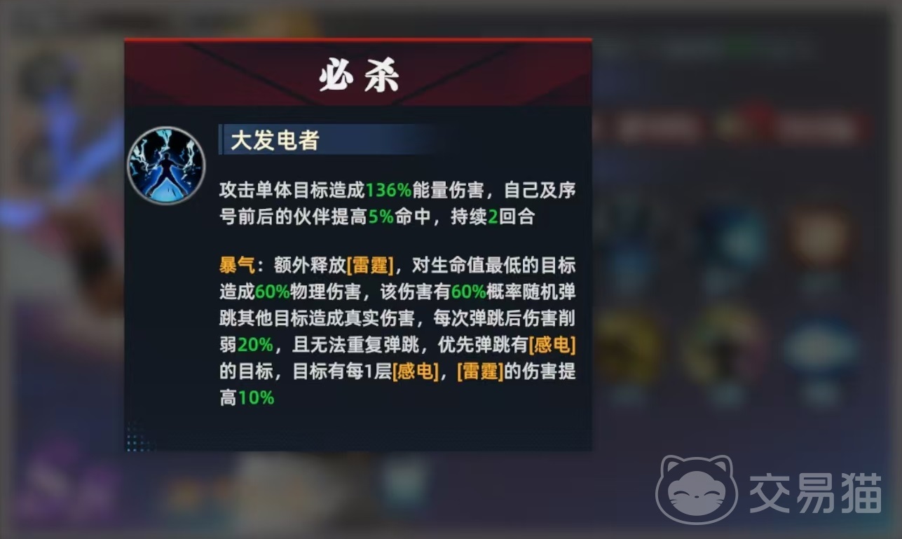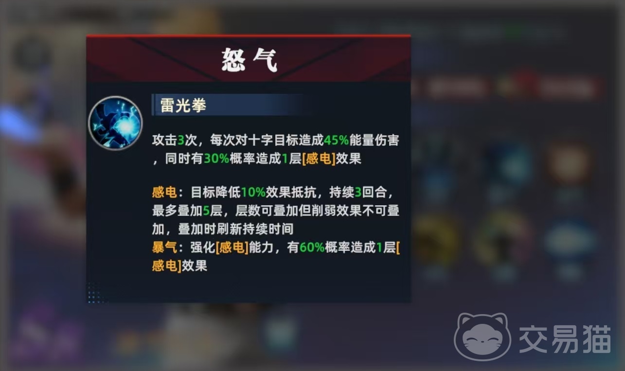 怒气技直接攻击三次,每次对十字目标造成能量伤害,有30%几率造成一层感电效果。对方被感电所影响之后,会降低10%效果抵抗能力,持续三回合,最多能叠加到5层,层数虽然可叠加,但是削弱效果不叠加。在爆气的强化下,会提升感电能力,造成感电的几率更高。在觉醒之后,对处于感电的敌方目标,会降低对方的最终免伤。这样就当于削弱了对方的防御,使我方可以打出更高的伤害,这就是二阶堂红丸这个辅助的核心所在。