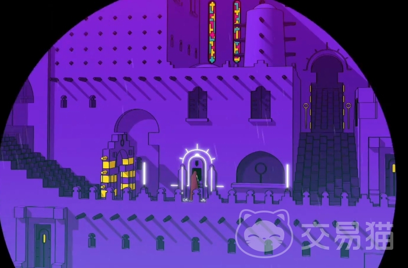 光靠前面两个文字解谜无法打开大门,需要越过大门往里走,还有两扇小紫门,输入的文字见图片。