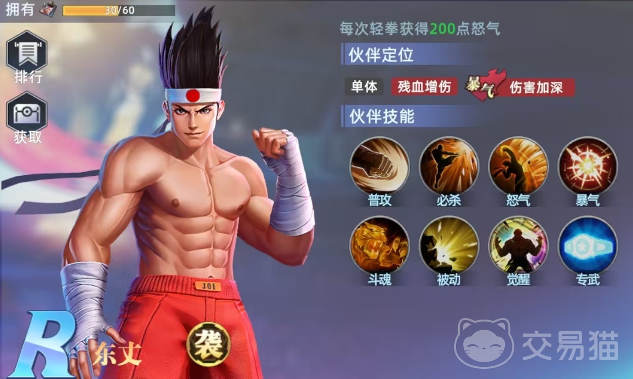 如果要评选出在全明星觉醒中最符合格斗家形象的角色,那么东丈绝对会榜上有名,虽然自身的品级只有R级,但是在外形方面却非常符合大家对于格斗家这个职业的认知,今天小编来详细介绍一下全明星觉醒东丈怎么样。或许有很多小伙伴抽到这个角色之后直接扔到了一旁,其实他所带来的残血增伤能力非常突出。