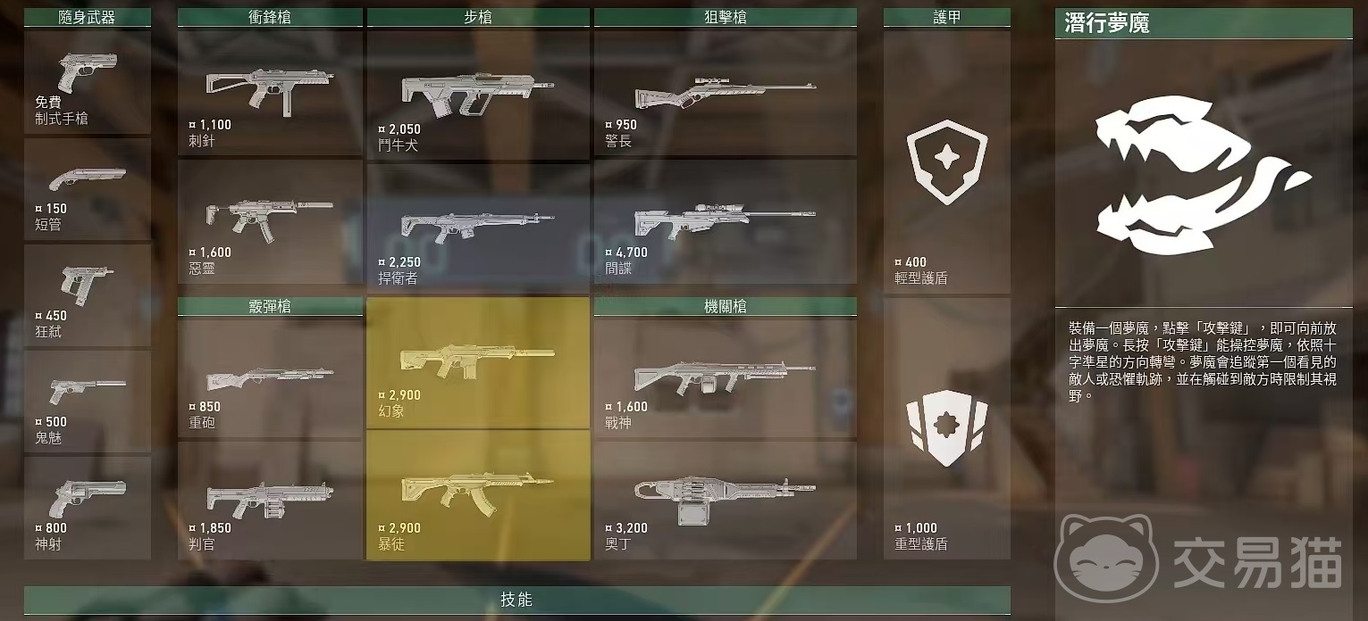 在界面中有着不同的分类,分为主武器、副武器、装甲、技能等对应的购买清单,在副武器和主武器清单中还会详细列出武器的名称价格,已经拥有了武器会进行相应的标记。一般来说,威力越大的枪械价格也就越高,随身武器例如各种手枪相对来说比较便宜。一些冲锋枪和霰弹枪的价格也较为优惠,但步枪和狙击枪普遍较贵。大家要根据经济的情况来合理进行选择,因为除了购买枪械之外,还需要购买护甲。护甲分为轻型护甲和重型护甲,拥有重型护甲就能够扛住更高的伤害,避免在无甲状态下被对方两枪直接带走。