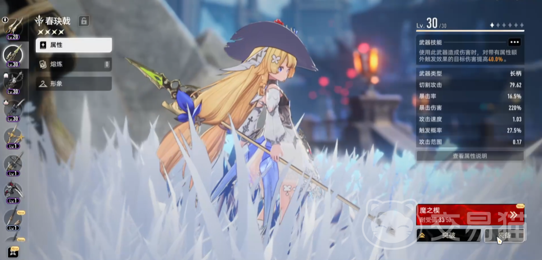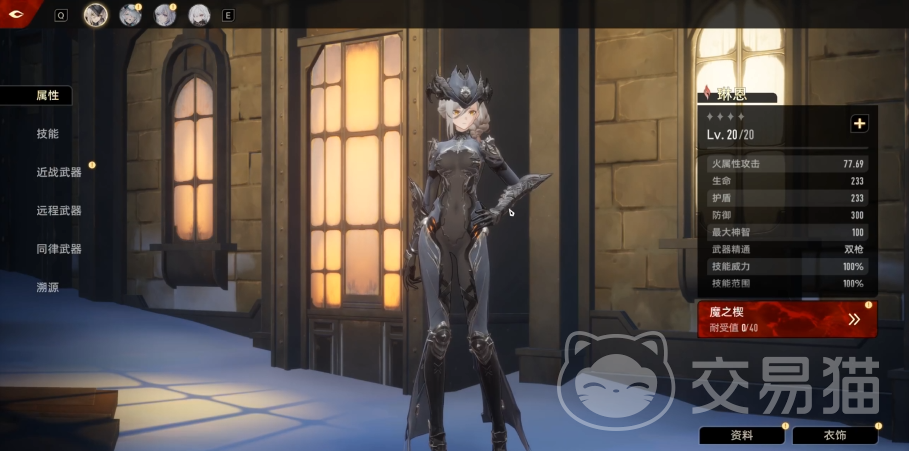 左上角可看到角色的属性,姓名,以及稀有度之类的情况。从数据面板就能得知角色的定位,以及基础属性,想要调整属性,就需要在魔之楔模块中自由搭配。所有的角色都有属于自己的属性,在攻击时如果触发额外效果,就会给敌人附加1个2秒一跳的DOT伤害,该伤害只受到角色攻击力的影响,光暗角色的属性攻击会有额外的效果。生命,护盾,防御,这三项词条是基础属性,也当做某些角色的技能使用条件。
