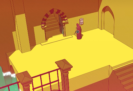 推出来以后npc就会带着玩家前往第二区域,这里可以将其称为区域2,来到这里后会发现这是一个植物园,进入其中后大家需要往上走,在上方可以看到一个石头门,需要推门进去,在里面会看到一个平台,需要与平台互动,让平台移动,完成后可以看到一个小门,需要打开小门,进入其中在里面可以看到一个需要投币的紫色大门,大家需要在场景中找到硬币。