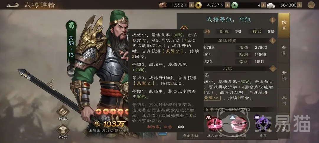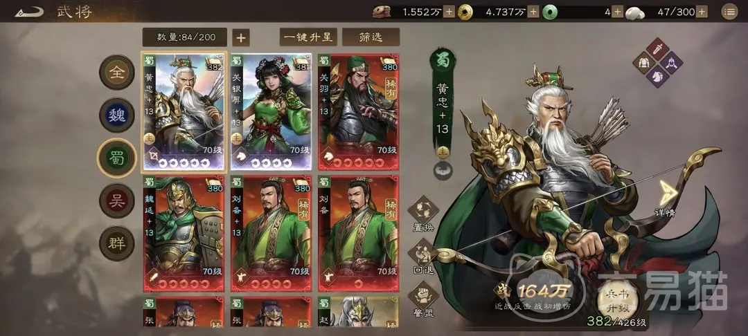 其次就是蜀国阵营,魏国值得选择的武将也很多,关羽,刘备都是比较典型的,关羽可以优先去培养,培养到6星左右,之后就是刘备,是适配蜀国的辅助型君主,该阵营的核心机制也就是快攻暴击,刘备具备增伤效果,还能无条件提升群体友方的爆伤,技能也有大范围加幸运和暴击,关羽输出核心,刘备辅助核心。