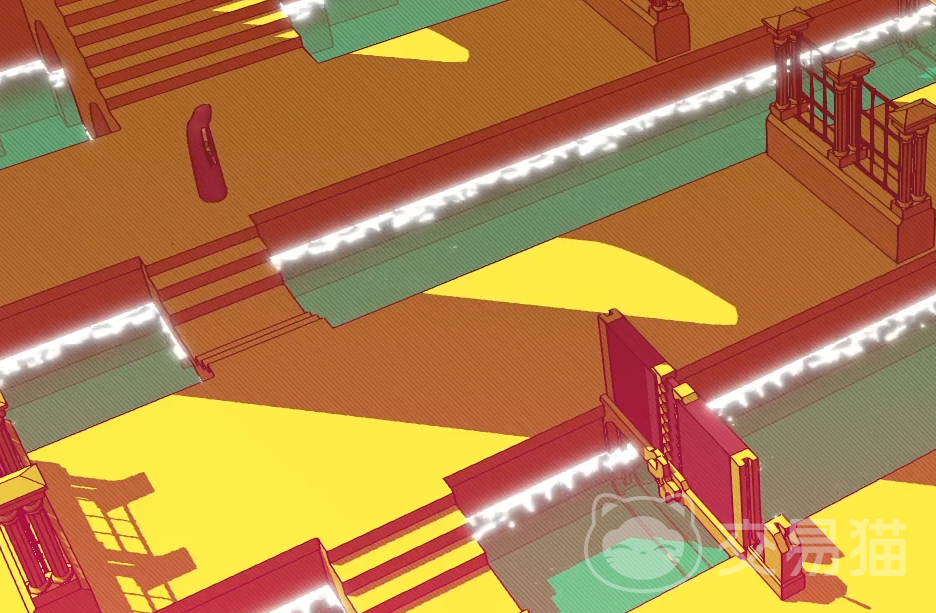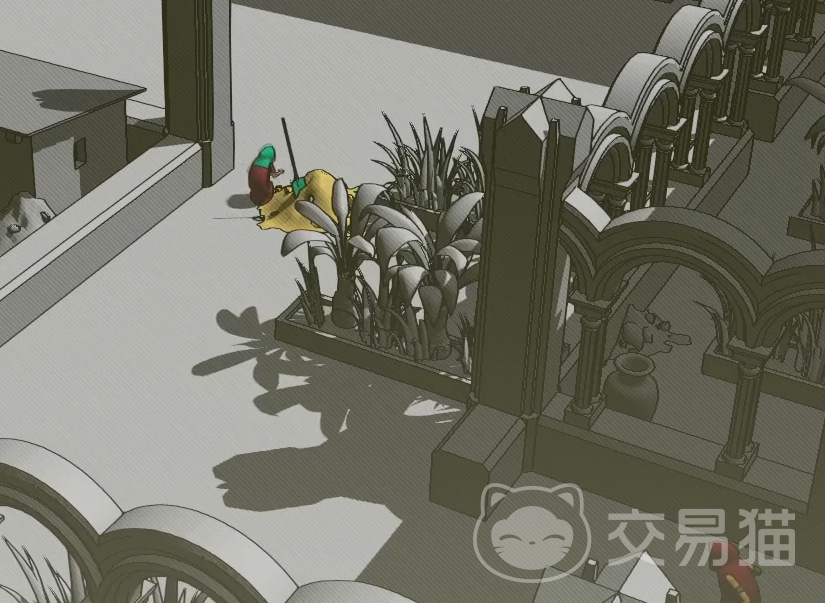 这里玩家们跟着前面一个人进行模仿。玩家们走到中间的时候需要捡起一个石子去打对面的铃铛,这样声音会吸引站岗的人前来查看。我们正好也可以趁此机会迅速的通过这个通道。接着通过之后和刚刚那人对话,从话里面得到门被锁了,我们需要找钥匙。