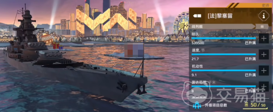 这艘战舰以"全能暴力美学"著称,配备四座火箭炮、两座四联装主炮以及三座副炮,具备超强的瞬间打击能力。全弹齐射10秒内打出30万强制伤害,攻势极为凶猛。而与其爆发火力同样惊人的,是她独特的高机动性,24节极速加上优良的转向性能,让她在战列舰中具备远超常规的生存与追击能力。再加上优秀的防空能力,使其在打击航母和潜艇时也具备极高效率。然而,新版本中黎塞留迎来削弱,主炮暴击率与机动性下调,失去了对抗导弹机的能力。在缺乏宙斯盾系统和电子对抗配置的情况下,其防空与抗压能力被其他战列舰如武藏、宙斯盾大和等超越。但瑕不掩瑜,黎塞留依然是一艘下限高、上限偏低的战舰,适合手法一般的玩家。