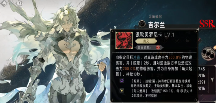 吉尔兰,则是攻速高、基础伤害强的单点控制,擅长点杀高威胁目标,适用于PVE突袭战。