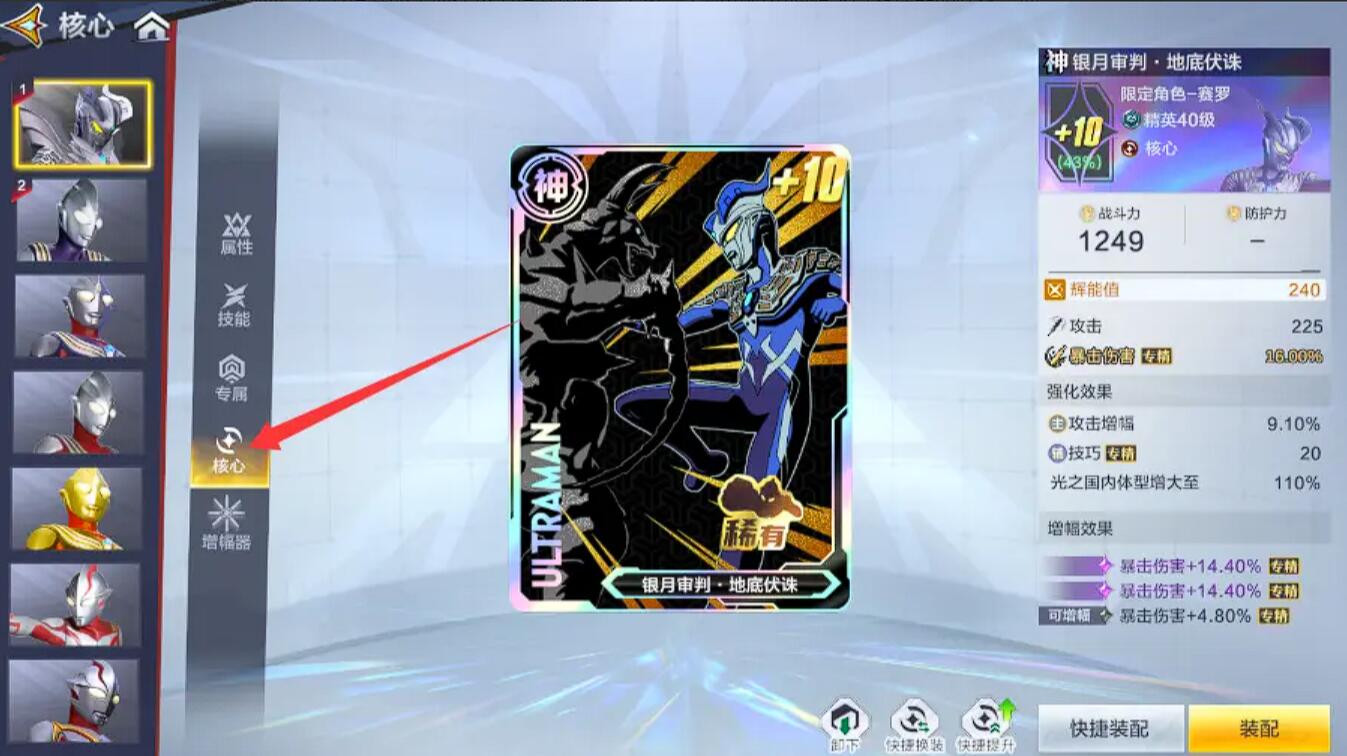 增幅器系统需精细调控属性。六卡槽中赛罗主堆贯穿精通(强化技能穿透)与切割精通(提升普攻伤害),实战配置四张"贯穿精通"卡(技能伤害+40%)搭配两张"切割精通"卡(普攻伤害+12%)。若属性不符,可通过"精通转化"功能消耗材料重置,例如将多余的"打击精通"转为"贯穿精通"。