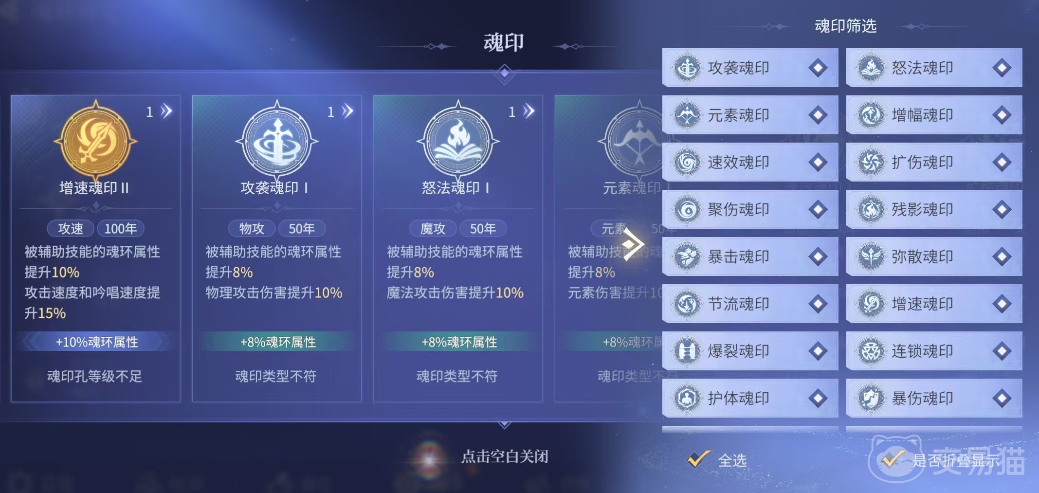 在魂印选择方面,前期挑选可以增强基础控制效果的魂印,让控制更加稳定,中期挑选一些能够强化持续伤害的,这样能有效提高输出,后期优先选择可大幅度提升武魂整体实力的魂印。小编的建议是前期可以选择缠绕强化印和韧性增幅印,中期可以选择寄生增伤印或者是元素增幅印,后期可以选择连锁魂印。