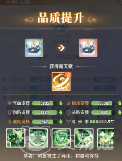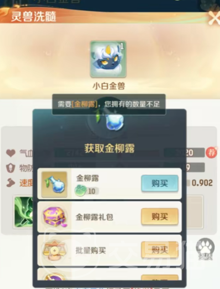 最后到了第三阶段之后会进而进化成白金王兽,白金王兽的头角会出现金色的液体附着。整体的体型会增大,并且并没有像其他宠物一样进入拟人时代还是兽者形态。在游戏中的宠物都是要进行养成。基本上除却珍稀的宠物一般都能在方寸山步捉到幼年形态。