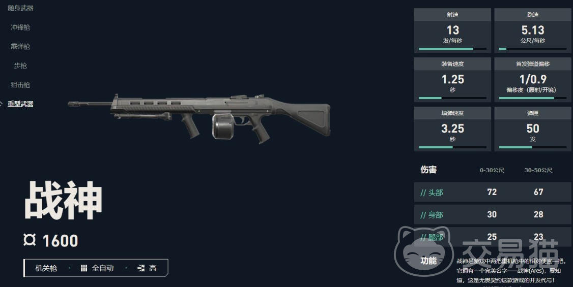 战神作为轻机枪,它的性价比是特别高的,不过它的后坐力比较大,玩家在射击的时候建议选择短点射击或者是间歇性射击,避免连续射击的时候出现弹倒飘散的情况,其实战神适合团队作战,毕竟它的射击速度比较高,再加上大容量的弹匣,可以给整个队伍提供火力支持。