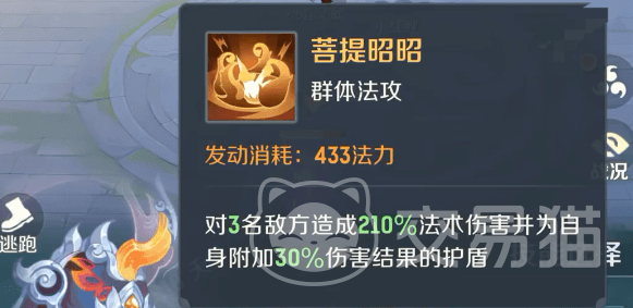 谛听作为灵兽法宠,在战斗中兼具攻守之能。特有的“盾守蝉心”技能,能够为自身及一名队友施加护盾效果,增强防御能力。此外,它还掌握着“菩提昭昭”这一法术技能,使用时可对三名敌方目标造成一定量的法术伤害,并在攻击的同时生成附带伤害效果的护盾。不过,施展该技能需要消耗433点法力值。