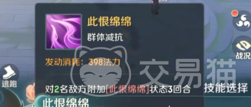 妃子灵兽具备一项此恨绵绵持续性的群体减抗特性,能够对选定的两位敌方目标施加此效果,且该效果会维持三个回合之久。在此期间,敌方所承受的法术伤害抗性会显著降低,降幅达到250%,从而提升我方法术攻击的伤害输出。另外,妃子还拥有“情尽”这一技能,施展后可使目标在一定时间内陷入特定状态。在此状态下,目标的法术命中概率会下降20%,同时受到的控制效果也会相应减弱20%。