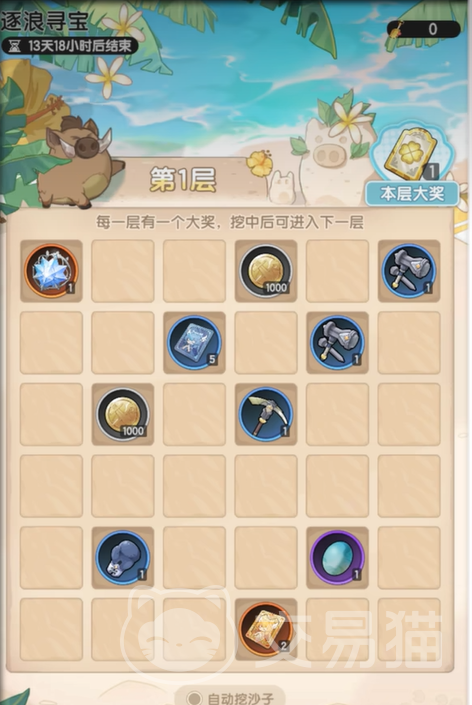 但这还远远不是全部,还有一个非常有趣的寻宝活动等着你!每天完成简单的任务,就能获得沙滩铲。拿起铲子,你就可以在沙盘中进行挖掘,每一铲下去都可能会有意想不到的惊喜。不同的沙盘带来不同的奖励,不仅让你在游戏中体会到探索的乐趣,还能收获一些意外的财富。这一系列的活动使得整个夏日庆典充满了趣味与期待。