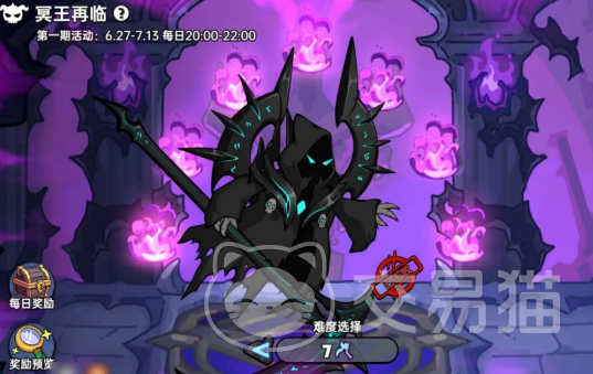 冥王再临的玩法非常简单直接——那就是击败强大的冥王!但简单的背后,隐藏着层层困难。在这次的挑战中,玩家们将有7个难度可选,每个难度的冥王都比上一层更加强大,挑战的难度不断升级。但也正是这份挑战,给勇士们带来了更丰厚的奖励。如果你成功击败了冥王,就能获得相应的首通奖励和每日奖励,让你事半功倍。