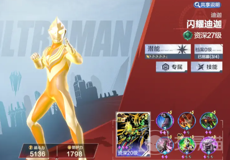 新手可以考虑获取闪耀迪迦,他作为迪迦的最强形态全身都散发金色光芒,能在实战中发射射线来把敌人给击败,有了他后不仅我们推图的速度会大幅增加,还能更好的获取怪物墓场给的奖励,奠定发展的基础,后期有了一定资源后还可以去获取利布特和奥特之王,前者属于防御能帮助我们抗下很多伤害,后者则能提供增益效果。