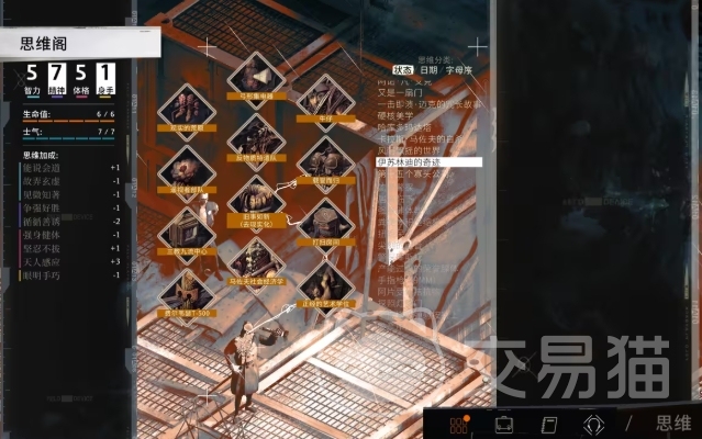 开展任何思维阁任务研究,都无可避免地要消耗时间,游戏中的时间设定极为关键,从清晨到深夜,时间的流逝影响着NPC的活动规律、事件的触发时机,而当主角进入睡眠状态时,思维阁研究进程会暂时停滞,这就意味着玩家需合理规划游戏时间,巧妙利用白天的探索间隙,推进思维研究,玩家在游戏进程中获得的技能点,除了用于提升常规的24种技能外,还可投入到思维阁系统,一方面消耗技能点能解锁更多思维阁槽位,使玩家得以同时进行多个思维研究,加快思维体系的完善,另一方面若玩家在研究过程中改变主意,或是发现某项思维与当前游戏策略相悖,可花费技能点抹除该思维,重新调整研究方向。
