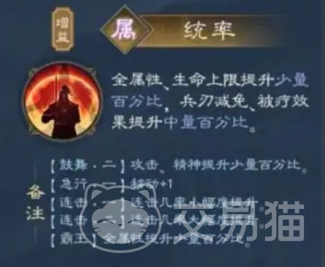 而急行一赋予的移动力增加以及连击一和连击二不同程度的连击几率提升,甚至还有新王的全属性少量百分比提升,这一系列的效果组合在一起还是可以提升不少数值的,当玩家们获取曹操之后,其实关于阵容搭配的思路,建议可以用曹操做辅助,然后搭配郭嘉控制+夏侯惇坦克+黄忠输出这样的搭配。