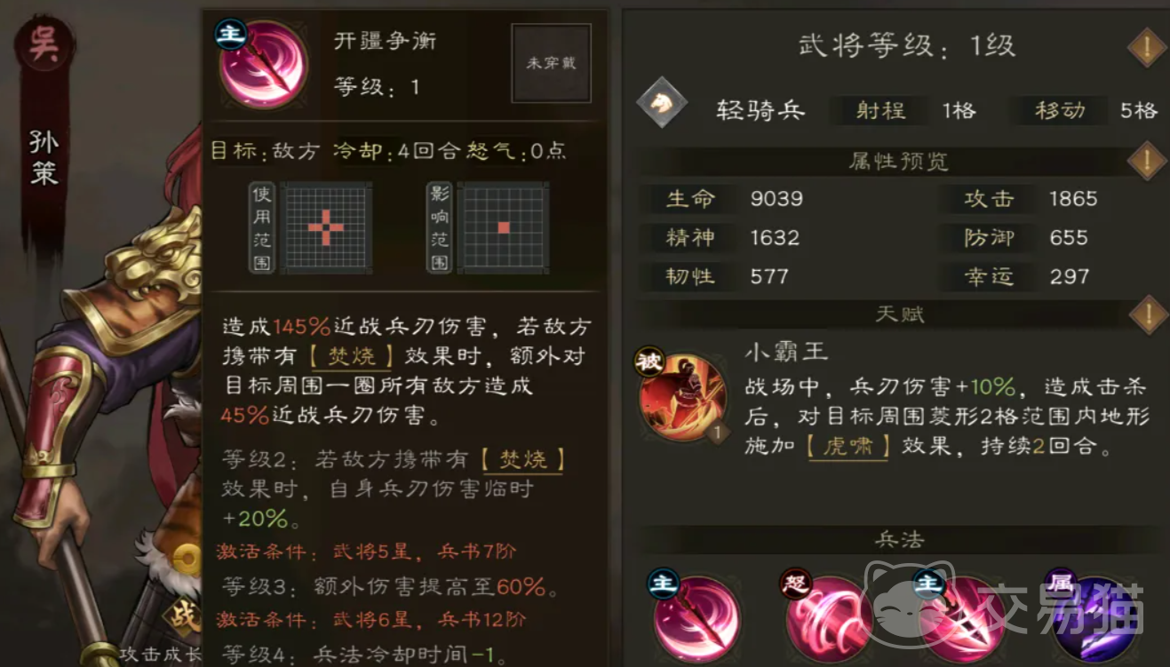 其中稀有孙策就具备了焚烧施加和增伤等能力,普通建议优先选孙坚与黄盖,这两位都有着高效的焚烧施加,最后群雄大C为吕玲绮,有着依靠对方负面数量来增伤的能力,所以普通我们可以考虑华雄和高顺,这两位都带有控制和抗伤,同时对负面的施加也比较契合队伍的需求。