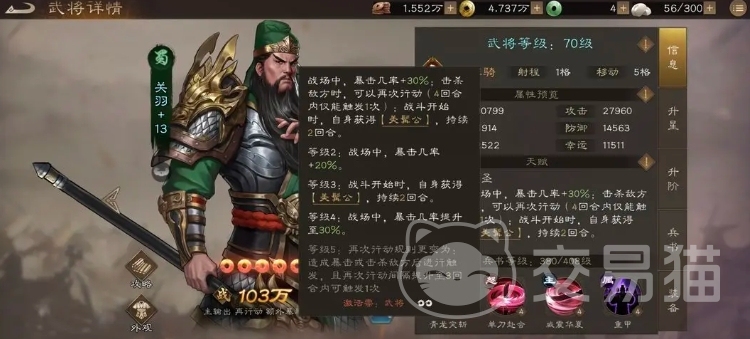 不过咱们平民玩家在观星的时候,往往就只能选一个心仪的武将,所以要是运气好获取了关羽,那就正好,这就已经有了组建阵容的核心角色了,因为关羽确实是目前不好获取的一个武将,如果是平民玩蜀国的话,且正好运气不好没有拿到关羽的话,那其实可以一直盯着稀有武将里的关羽慢慢攒资源,一点点把阵容搭建起来。