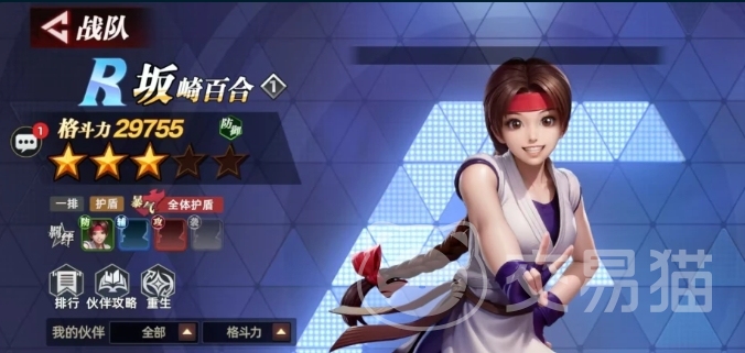 此外借助于自身独特的斗魂效果,每当队友进行轻拳攻击时,坂崎百合都能够额外恢复50点怒气,这一点就使得她在战斗中能够更频繁地释放技能,充分发挥自己的辅助作用,在进行觉醒之后,坂崎百合还能够为我方每回合额外添加护盾,再次强化她的防御辅助能力,使其成为一个主要以护盾为效果的核心防御型角色。