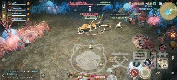 锐牙长须豹:这就是第1个boss,玩家沿途就能够看到3~4组合为一体的小怪。部分的小怪就会有特殊的技能,例如蝙蝠就会释放黑色的debuff。会将自身作为中心,然后去释放一个比较可怕的范围性伤害。水母在平a之后就会有仇恨清空效果,还有麻痹清空效果,另外还会朝着正前方造成范围性伤害。在面对这一个boss时,玩家就需要选择正确的珊瑚,如果选择的颜色出错,就会影响到通关的机会。