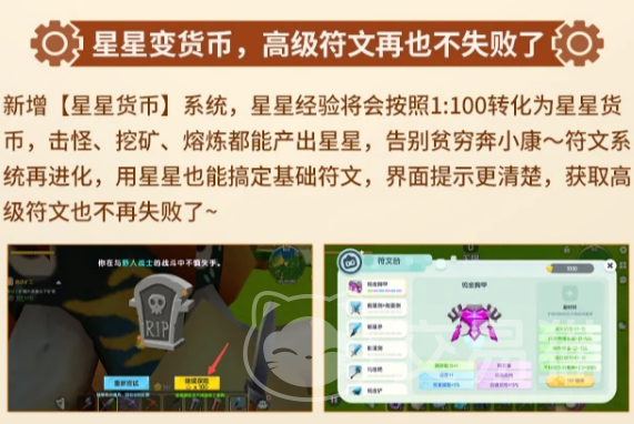 另外,新加入的“星星货币”系统也是一个不容忽视的亮点。玩家通过击败怪物、挖矿或者熔炼物品,都能获得星星经验,而这些经验将转化为星星货币。这个系统不仅增加了游戏的深度,还让玩家可以通过不同的活动来积累资源,不再局限于单一的玩法。可以想象,随着星星货币的积累,你可以解锁更多强力的道具或装备,从而提升自己的战斗力,带领小伙伴们征服更强大的敌人。