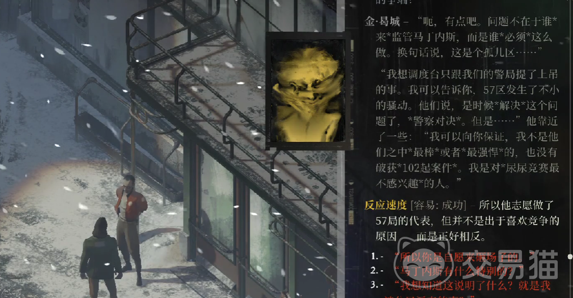 上面的这一些内容就是本期小编为大家带来的,极乐迪斯科任务流程详细解读的全部了,实际上游戏当中的任务难度并不高,但最大的难点是,游戏有需要阅读的文字信息,以及比较苛刻的技能判定,希望看完这次内容的小伙伴们,能进到游戏之中实际的体验一下哦。
