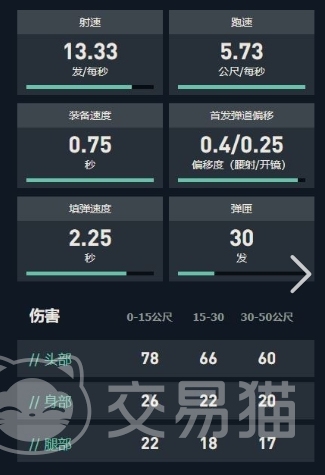 值得一提的是,骇灵在不同距离下的作战表现同样出色,在0-15米范围内,其爆头率高达78%,身体命中率为26%,腿部命中率为22%,展现了其近战的强大威力,而在15-30米范围内,虽然爆头率有所下降,但依然保持在较高水平,甚至有66%的数值,身体命中率和腿部命中率也分别达到了22%和18%,即使在30-50米的较远距离上,骇灵的爆头率仍能维持在60%,身体命中率和腿部命中率也分别有20%和17%的表现。