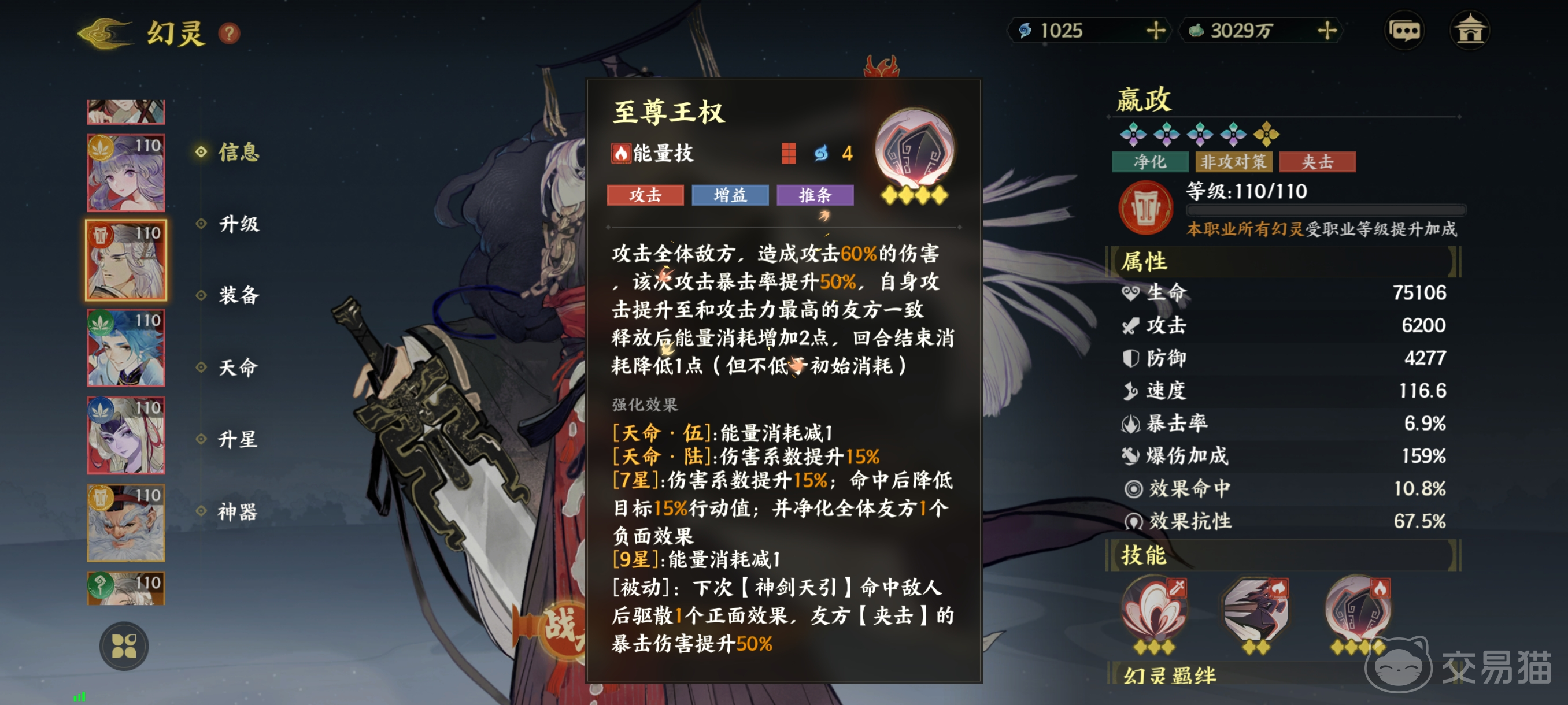 至尊王权是一个能量技能,该技能带有攻击、增益、推条等效果,技能星级为4颗星,至尊王权是一个对地方全体进行攻击的技能,该能在造成60%的伤害时,本次攻击的暴击率也会提高50%,自身攻击的提升会直接消耗掉方攻击力最高队友的能量点。