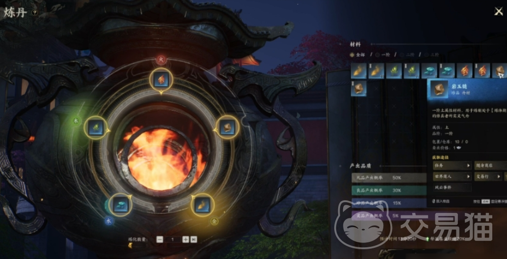 进入到交互环节以后点击炼丹界面的右下角开始炼丹按钮就可以进入到炼丹过程中了,在庙会进行炼丹中最大的好处就是玩家不用在去购买或者是建设额外的炼丹场所了,这种炼丹方式比较适合那些想要快速炼丹的玩家。