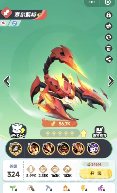 钢角龙凭借其坚韧的身躯和强大的力量,在团队中担任坦克与控制的重要角色,它的技能以提升自身防御和控制敌人为主,钢角龙拥有高防御和高生命值,能够在战斗中承受大量伤害,为队友提供坚实的前排屏障,其控制技能可使敌方多个目标陷入眩晕或击退状态,有效打乱敌方进攻节奏,在PVP对战中钢角龙可率先冲向敌方后排,使用眩晕技能控制住敌方输出,为己方队友创造进攻机会,同时吸引敌方火力,保护己方后排输出。