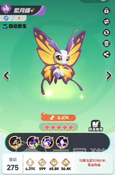 紫月蝶是电系中的佼佼者,常作为团队的核心输出,技能多围绕电系元素展开,不仅能造成高额的电系伤害,部分技能还具有连锁闪电效果,可在多个敌人之间跳跃,对敌人造成多次伤害,紫月蝶的队长技能更是强大,能够提升同阵营库比的伤害,为团队整体输出能力带来显著提升,当紫月蝶释放必杀技时,会召唤出强大的电系能量,对敌方全体造成巨额伤害,且有几率使敌人陷入感电状态,感电状态下的敌人受到的伤害会进一步增加。