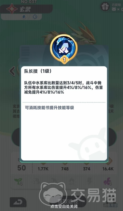 玄武是坦度非常夸张的坦克型库比,而且它的伤害能力也不弱,也有着很强的对群能力,队长技更是能提高队伍里水系宠的输出伤害,同时还能提高不错的减伤效果。在实战搭配中,它的配队方案比较固定,一是以玄武为队长的纯水队,二是同时上玄武和覆海鲨的四水队。