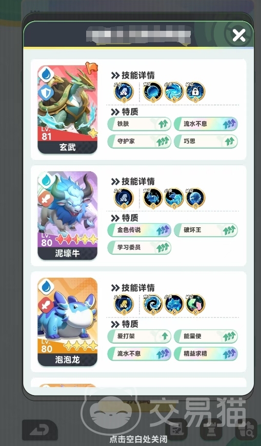 覆海鲨作队长时能为纯色队提供不错的加成,所以可在玄武纯水队的基础上换下霸浪蛟,组成玄武、覆海鲨、水灵儿、纤刃蝶和泡泡龙的四水队,在强度上限要比纯水队高上那么一些,但对各宠物的星级有着较高的要求,可在后期宠物星级都较高时使用。
