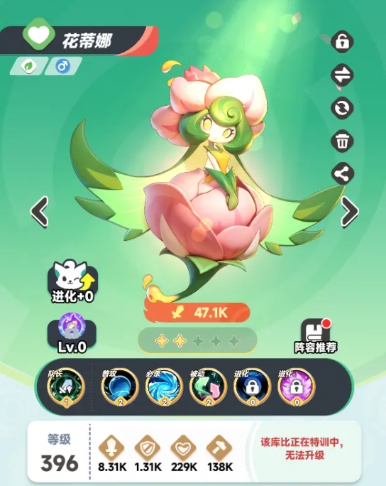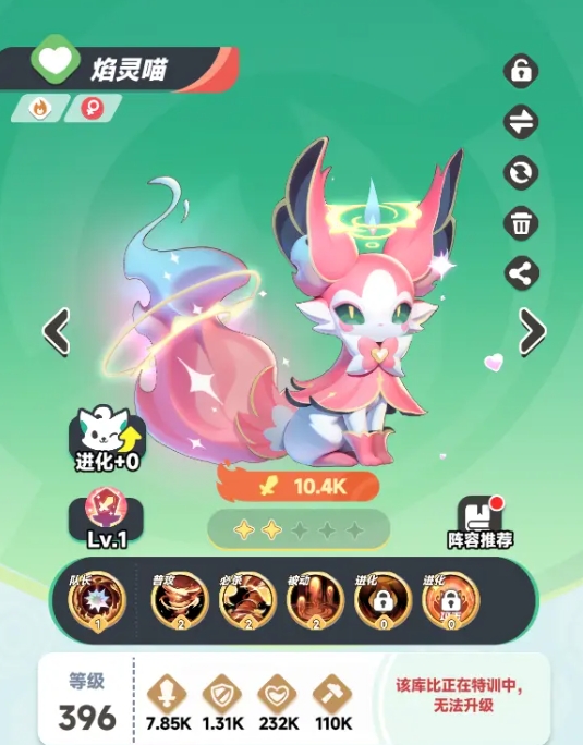 机制很优秀的辅助宠,不弱的输出能力可弥补队伍的伤害,技能更是带着较高的加伤能力,还拥有着能回复队友能量的被动。