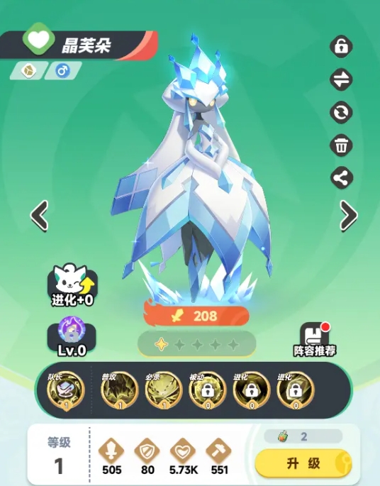 晶芙朵能为全队提供高额的护盾值,自身还能为全体队友加攻,从机制上来看是攻防一体的优质辅助宠,可加入纯岩队。
