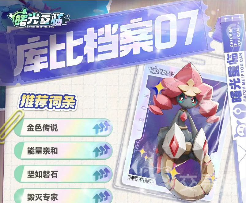 紫月蝶是电属性的输出角色,能通过孵蛋,野外抓捕等方式获取。介意说是新手期过渡必养的角色,性价比拉满了。队长技,在队伍中每有一只电系的库比,战斗时自身的伤害就提高3%。普攻发射电球对单个目标造成伤害;被动效果则是在战斗开始时能获得能量。必杀技使用后,会向前方发射大电球攻击敌人,每次释放必杀技后,必杀伤害会降低。