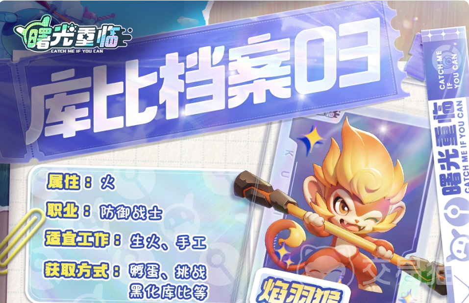 首先它适合的工作是生火和手工,从孵蛋,挑战黑化库比等途径都能获取。在它担任队长时,如果队伍火属性的宠物达到一定的数量,战斗时能给它自己带来战斗力的加成效果;被动效果也比较简单粗暴,主要效果就是提升它打出的暴击伤害。