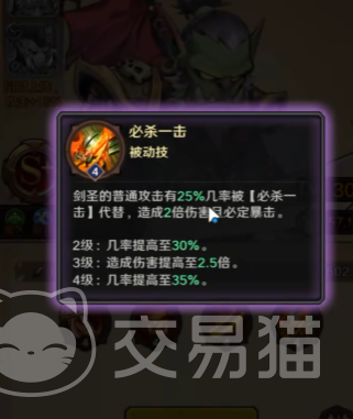 必杀一击也是剑圣的被动技能,剑圣普攻技能攻击有25%的概率会被致命一击所替代,致命一击在可以给敌人造成2倍伤害同时还一定会触发暴击。