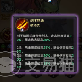 剑术精通是剑圣的被动技能,该技能属于传承剑术,剑术精通被触发后,剑圣的攻击速度可以提高20%,暴击伤害也会提升20%。