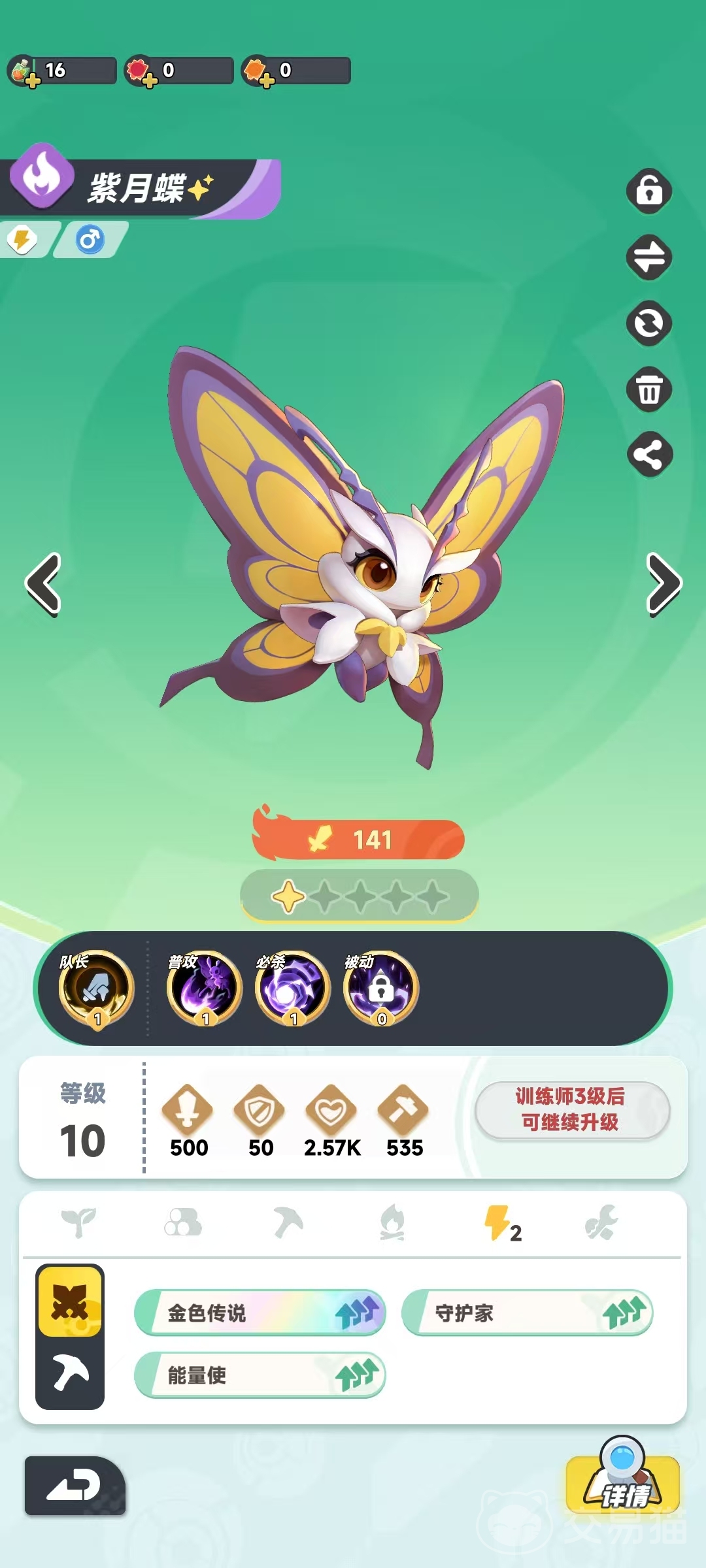 在宠物养成方面,首先是等级提升,通过完成任务进行战斗等方式,可以获得经验,提升宠物等级。这。有一个建筑很关键,那就是特训营,这个营地的作用是可以让其他宠物,也可以同步达到主队的平均等级和基因,所以主队培养要均衡。千万不要只主升一只宠物,等级方面还是要做到均衡,其他可以适当倾斜。