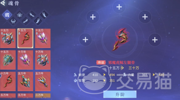 在获取之后别忘记,要选择尽快的提升等级。例如玩家在选择邪魔虎鲸左腿骨之后消耗对应的材料就可以迅速的提升等级。提升到一定程度时,那基础属性也会大幅度的增长。